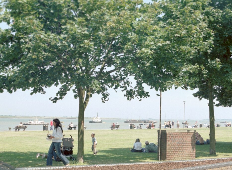 We stopped just long enough for photos, then set off back up the bank. Near the top we passed Arriva's Scania 3250 on the remnant 480 service. We motored along to Gravesend, and round the traffic system to the Tilbury Ferry landing, where we paused again.