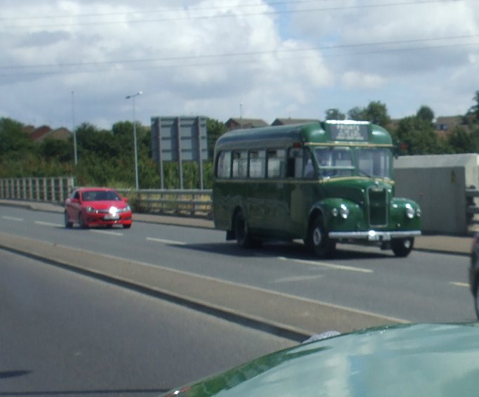 We turned west to work through Gravesend to the station. Just beyond we made the turn south-west onto Perry Street to head out towards Southfleet. We met RF489 returning on the 489A from Meopham, then headed out across the wilderness to cross the motorway and the Channel Tunnel Rail Link. No trains in sight. We turned right at the roundabout and headed up the narrow lane towards the site of Southfleet Station, following a Solo of Kent Top Travel.