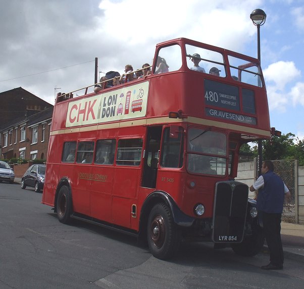 The bus pulled back up into the street, and everybody piled back on. We pulled up the sharp bank to the main road, and rolled down into Gravesend, following the one-way system down to the riverside again, where large container ships were edging past on their way to or from Tilbury. We passed the Tilbury Ferry landing and climbed back up to the Clocktower, erstwhile terminus of so many of the London Transport routes in the days when this was the very edge of the LT system. But we did not stop there, continuing on into the fringes of Denton to the Milton Street carpark.