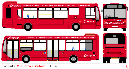 East Thames Buses was London Buses' operator of last resort, so they were called in to take up operation of the 42. They used a collection of Dart SLFs that they had actually acquired to supplement the unreliable Excels on the 180 and 132. But in November they began to acquire the Scanias, which were put into Ash Grove garage ready to work the 42 from December 2002. East Thames Buses logos replaced the Easylink transfers, and they were renumbered as the ELS class (but not in the same number order as before). They were not route-bound to the 42, and made odd appearances on the 185, the 150, the 108, the 128 and the 129. Three (or four) were even involved in the Olympic Torch procession in June 2004, carrying support staff. The expensive Ash Grove garage was deserted by East Thames Buses in mid-October 2005, with the ELS buses moving to a new site at Mandela Way, Southwark, still convenient for the 42. But the move did curtail their activities on the Ilford routes 150 and 128. Now they began to appear on route 1, substituting for VWL double-deckers. During 2008 they also started to appear on the 201 (Morden - Herne Hill) alongside Cadets. Repaints started in September 2008, and the class lost their cant-rail route-branding for route 42. Go-Ahead London and the 42: ELS1-14