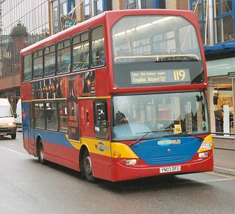 Metrobus also majored on the MetroCity 12.0m single-decker, using them on its long intricate 358 route from Orpington to Crystal Palace via everywhere. It later used them on the X26 limited stop service from West Croydon to Heathrow. Metrobus also used them extensively on its Crawley routes, using some shorter (10.9m) versions as well as the 12.0m long ones. The Polish Scania doubledeckers found favour also with Transdev, who bought them for London United and London Sovereign. The East London Bus Group (later Stagecoach again) took a sizeable number. First London had some too. Go-Ahead London had a small number of Omnidekkas and OmniCity double-deckers. There was even an OmniCity bendibus demonstrator. Bendibus Scanias were operated by Menzies for Heathrow work, as were a large number of straight single-deckers. I have started on these pages, but have not tackled all of them yet.