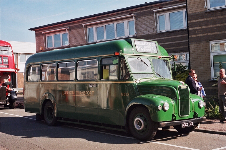 For a bus to reach those parts that other buses could not reach London Transport had its Heineken Bus, the Guy Special. A twenty-six seater, it was LT's only one-man operated bus amongst the postwar designs (at first), and was only allowed to work in the Country Area. GS13 was sitting quietly wearing blinds to remind people of the upcoming Hemel Hempstead Running Day.