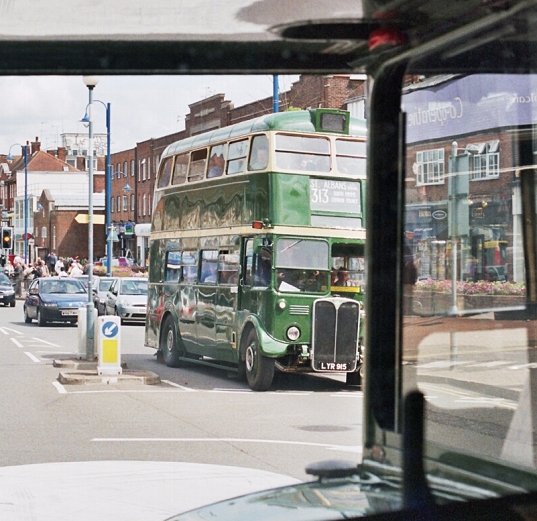 It was followed by Blue Triangle's open-topper, RT3435, which came under the station bridge as we went the other way. We stopped at the traffic lights, and RTW29 pulled round the corner, heading for the static display.