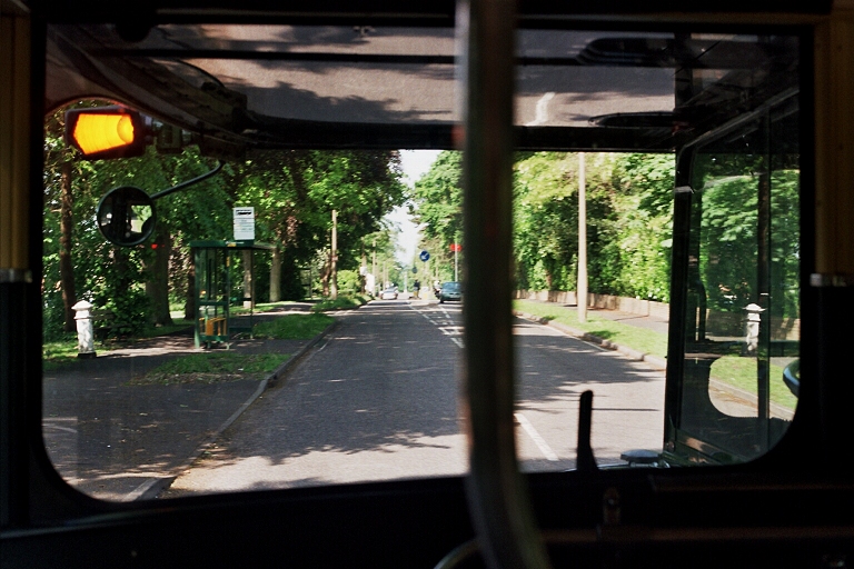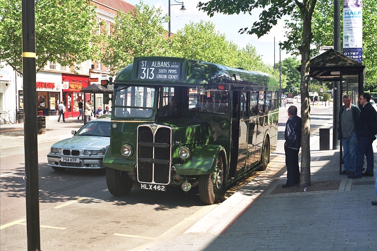 The blinds were reset for the return journey, we climbed back aboard, and set off back to Potters Bar. Again we went through London Colney, and after crossing he bridge stopped at the bus stop for photos.