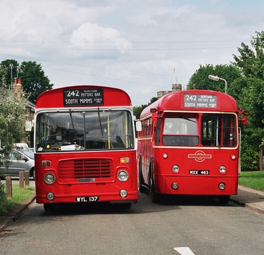 The two single-deckers purred or roared out to South Mimms, where we stopped briefly opposite the garage for photos.