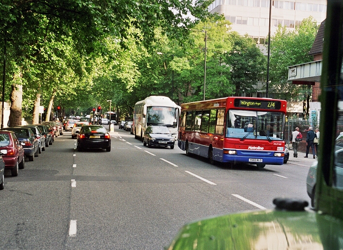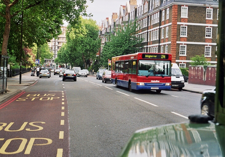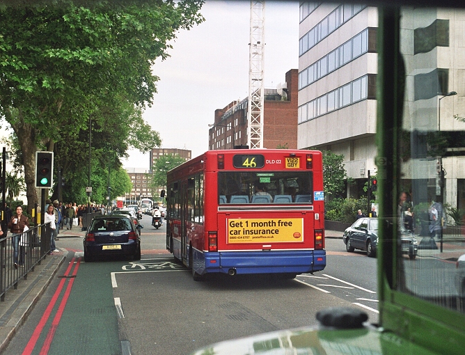 This took us to the A1, where we turned left for London. So for a while we were insulated from most Sunday-evening bus activity. We did see a Timebus RML heading north at Hendon, then bus activity increased as we went down the A41 into London. The Test Match had just ended as we passed through St.John's Wood, and there were crowds of people. A Metroline Dart on the 46, DLD122, eased along in front of us.