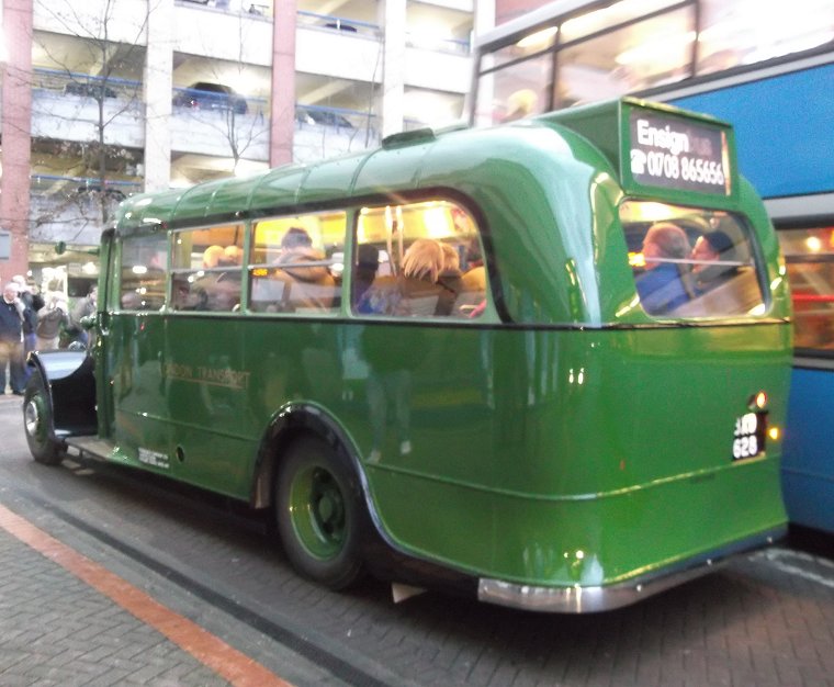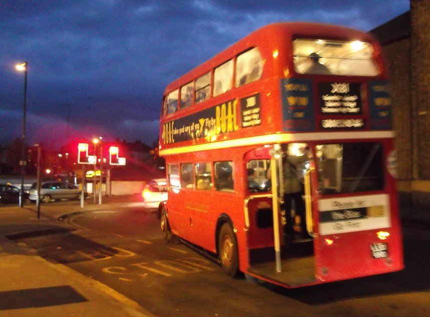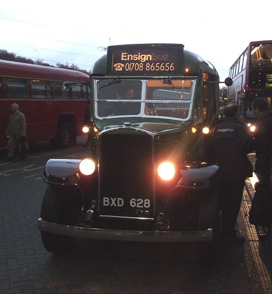 X81: Lakeside to Gravesend: RT3251It was getting dark. I decided to head for home. Just coming in was RT3251, heading for Gravesend, and I climbed aboard, taking the warm seat behind the bonnet, where the flywheel housing keeps your feet warm.I enjoyed the dusk ride over the Queen Elizabeth II Bridge, with the lights twinkling and the dark obliterating the worse aspects of the view. Beyond the toll booths we turned back towards the water. The bridge was a spectacular sight, with the headlamps of the cars coming down from the sky. We continued to Greenhithe Station, then down into the Bluewater pit. There herds of LED reindeer stood betweenn the LED-draped trees. A for effort. After calling at the bus station RT3251 headed on east, climbing up into Northfleet and running along the high road, with excellent views of the river. I alighted at Gravesend station, where I missed a train by the time it took to buy at ticket to Greenhithe. Never mind, there was another half an hour later, and a station cafe. Many thanks to the folk at Ensignbus, not just for an entertaining day, but also for the continuing restoration of so many wonderful buses for their vintage fleet. Thanks. Vintage buses that I saw: C4 RT8, RT191, RT1499, RT3232, RT3251, RT4421 RTL453, RTL1014, RTW467 RF319 RML2670, DM2646 M1 EN331, LCT 5280NW, LU167