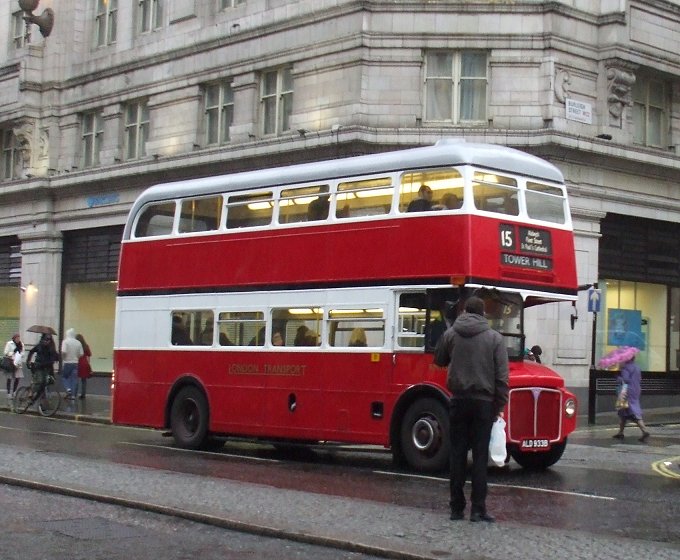 Stagecoach: route 15 (usually Tower Hill to Trafalgar Square): RM 324, 652, 871, 1941, 1968, 2050, 2060, 2071, 2089 and RML2760