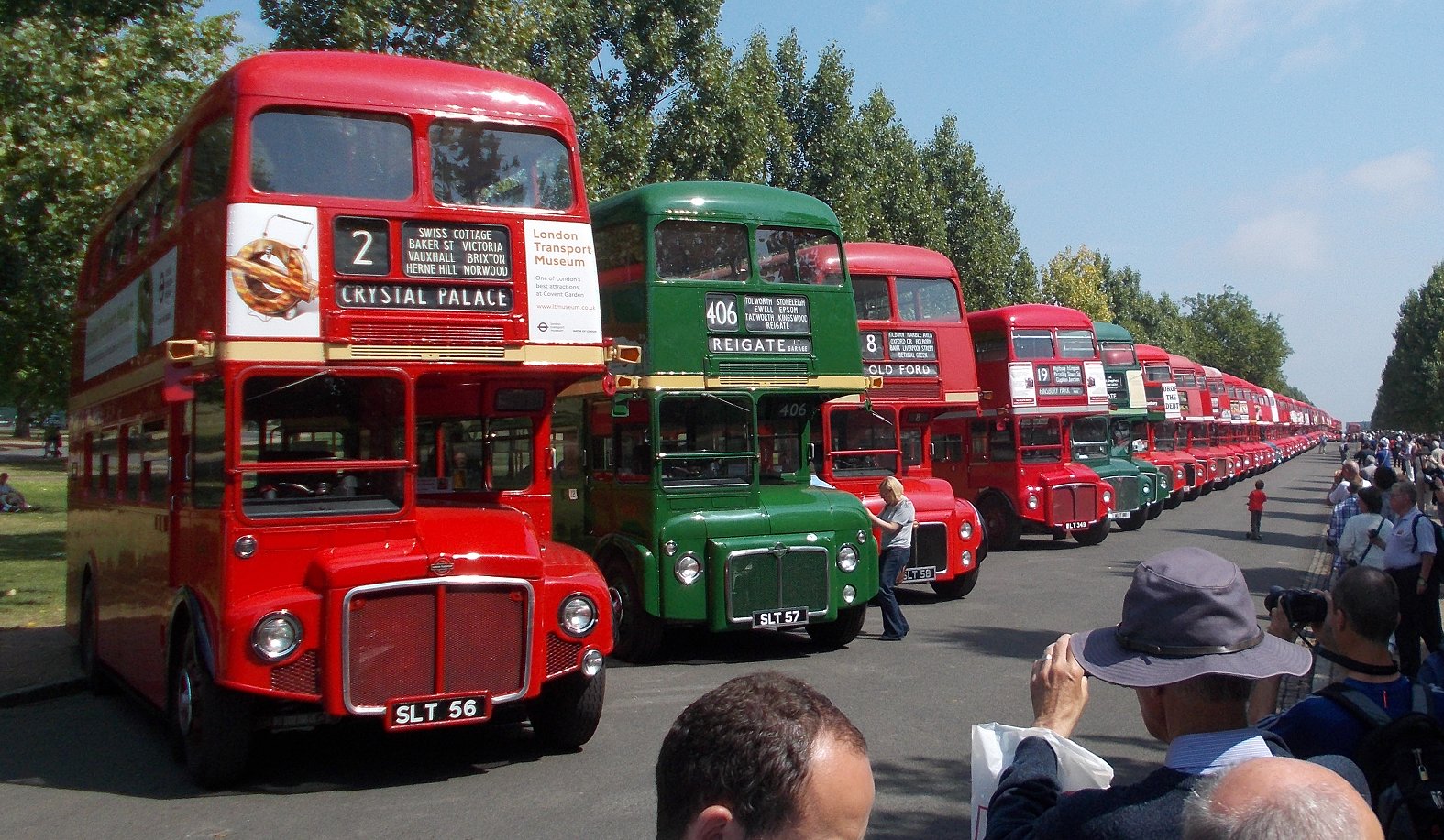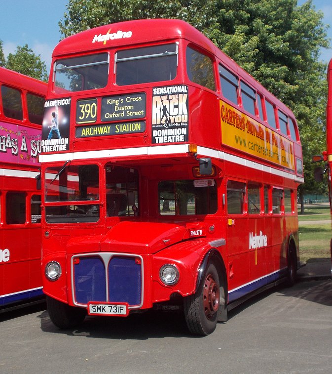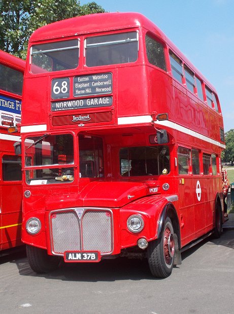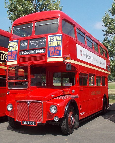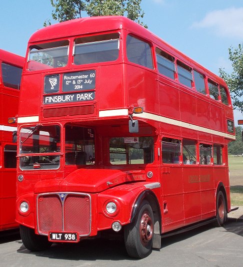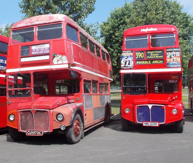 Routemaster 60Saturday 12th July 2014Prepared by Ian Smith, 17th July 2014.It was, of course, very boring: just a long, long line of Routemasters parked in the sunshine. There was just an occasional new arrival. Highlights were meetings with people. So here are the bus pictures: It was, of course, the 60th anniversary of RM1. Not that the present RM1 looks much like the RM1 that I saw back in 1954 at the Commercial Motor Show. That had a different front end, with a flat tin front. The blind apertures were different too: just a single small aperture at the front, with an even tinier one above the door. The current condition looks much better. Highlight of the display for me was the next in line: RM2. Back in green Country Area livery, with the front restored to its early service condition. It was interesting to compare this front with its neighbour, Weymann-bodied RML3, which had a front nearside far closer to the production design. The original Leyland Routemaster, RML3, was next in line, followed by a gap to accommodate RMC4 if it arrived. After that the logistics of getting the Routemasters in numerical sequence became too great, and the line became random. First was RM349. Then came RM811, green for its work with the David Shepherd Conservation Foundation and RML2284, the latter cut down in height and length. RM1842, used for campaigning for the World's poor. RML2267, still in London General route 12 livery. LT-liveried RM2179, RM2173 - undergoing repaint, Metroline RML2620. A pair of very smart Metroline RMLs: RML2620, RML2731, with their blue radiator grilles. RM2186 - with LT fleetnames and cream band; RML2391 - with white band and London Buses logo; RM2060 -with white band and white LT bullseye. RM7 - with early bonnet roundel; BEA's KGJ601D (BEA1, RMA 28); Arriva-liveried RM2217. RM2037 -with white bullseye and silver grille; unidentified RML (actually RML2393 -thanks to John Perthen for the datum); RM238, with black grille. RM1063, RM1000, RM2097, showing variations in front heating and brake grilles. RM1348, RM254, RM188. London United RML2751; RML2606 - Aurora(?); RML2464 with raised roof for Natwest. RML2760 - the highest numbered RML; London Necrobus RML2528, liveried for The Ghost Tour. RM16, RM308, support vehicle RM66, all with white bullseyes, but the last rather modified! Black-grilled RML2262 and RM9; Green Line RCL2229. White bullseyes on RM2180 and RM1033; LT fleetname on RM938. RML2368, RM1620, RM857. That was by no means all: the line continued to stretch northwards..... Part Two: more RoutemastersPhotos by Ian Smith. Click on any of them for a larger picture.