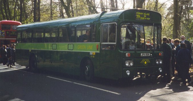 PreservationAt least two have made it into preservation, and can be seen at events:RP90 is a frequent attender at London area events, and works hard. It has been beautifully restored to a deeply lustrous GreenLine livery. It is part of the collection of The London Bus Museum at Brooklands. RP21 was also restored to Green Line livery for its second life with London Country, initially the dark green with pale green band. Later in preservation it acquired NBC green and white. It was bought from preservation by The London Bus Company to operate the 381 between Epping Station, Coopersale and North Weald. RP90 rests at Stoke d'Abernon station in June 1999, between turns on the shuttle to Cobham Museum during RT60, and RP21 is seen earlier in the year at Cobham.![]()