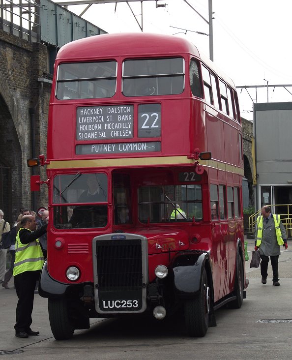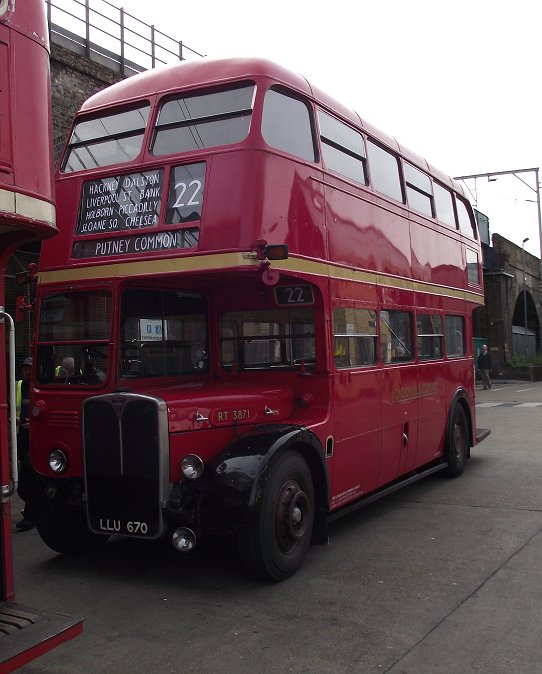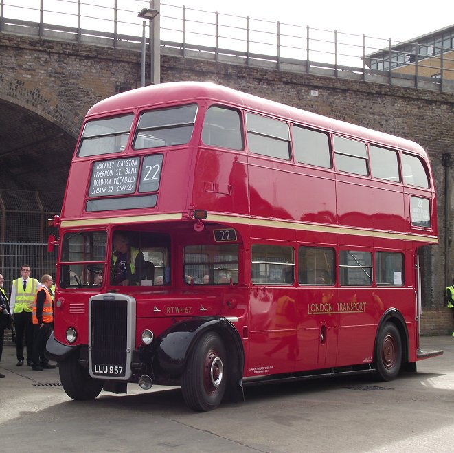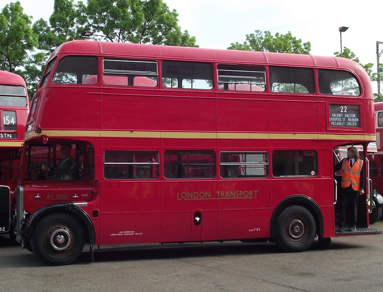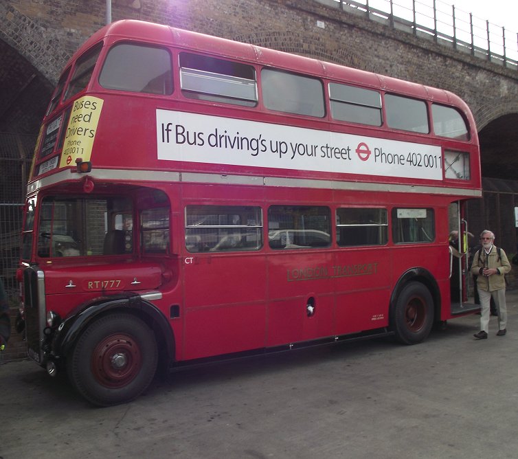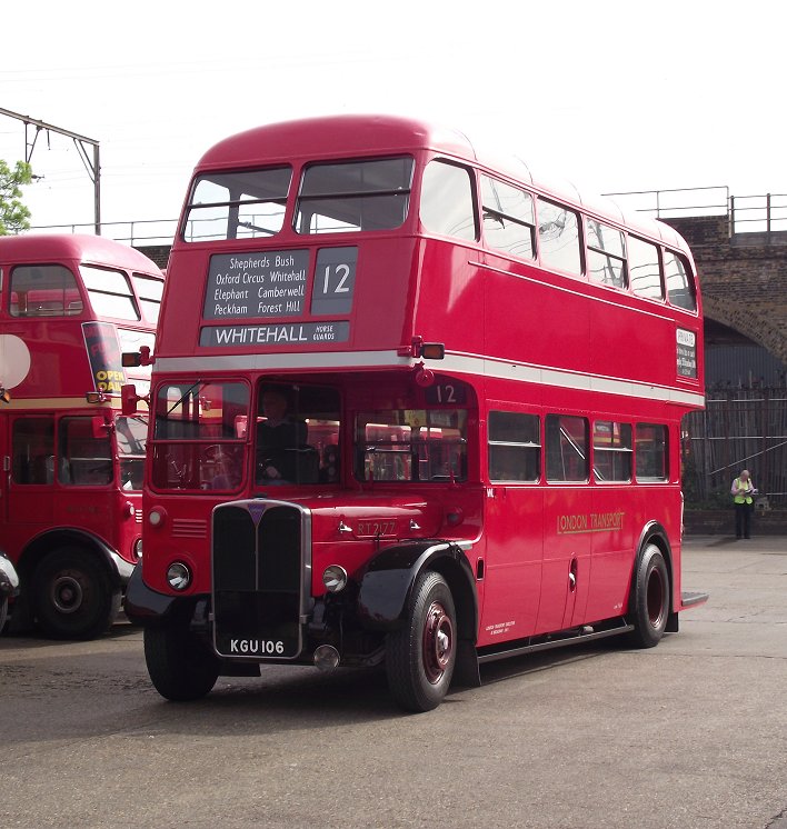 RT75Saturday 12th April 2014Prepared on Wordpad by Ian Smith, 17th April 2014Part 1: Ash Grove GarageI alighted from the 48 at Cambridge Heath Station. Now where was Ash Grove Garage? I consulted my map. Ah yes! Mare Street was just north from where I stood. By way of confirmation, RTW185 came up the road and headed in that direction.Greenline-liveried RT3491 swung round the corner under the railway bridge and also headed north. I followed on. I didn't hear RT3183 coming up behind me. Suddenly the Country Area bus passed me and went on. I grabbed my camera for a quick rear shot. RT1798 went past just as I approached the entrance to Ash Grove garage. I pulled in. So did the Central Area bus. There was a short queue of buses waiting on the short access road: RT1798, RT3183, RT3491. People were filing in through the public gate, where a welcoming committee greeted us and offered hi-viz jackets for people to use while in the busy yard: not so good for photographers, but an essential safety tool in this environment. Inside the garage the yard was being used for the display of RT family buses, with Leylands at the east end next to the busy railway, red RTs in the centre, and green RTs at the far end. The line was still filling up as buses continued to arrive. Already at the "Leyland End" were Catford's RT1702, Ensignbus RTL453, London Bus Company RTW75, and privately-owned RTW185. Buses were still arriving, and queuing for a parking spot. Next in were RT3871 (London Bus Company), and RT1777. The latter was new to me - and many others here - and arrived dressed as a Clapton trainer (its last role with LT). Privately preserved RT3775 was next in the entrance queue. I turned back to the line-up, passing by RTW185, RTW75, RTl453 and RT1702. The war-time build of RTs was represented by RT113, wearing its wartime livery, including single headlamp. The small batch of RTs bodied by Cravens of Sheffield was represented by Ensignbus' RT1431. Their standard RT - RT4421 was standing next to it in the later post-war livery of red with cream cant-rail band. Next was privately preserved RT1798, another in "standard" Central Area livery. I turned away from photographing Saunders-bodied RT3062 in early post-war livery to watch RT1 arriving. It turned and backed up next to RT3062, parking in front of a Borismaster that was standing by the yard wall. Brand new buses were lined up on both sides of the yard, some not yet registered, with number plates covered up. One was LT198, parked next to the north wall, and about to be hidden as further buses arrived to join the line. I turned my attentionsto the beautiful line-up of green machines: first were two of the GreenLine-liveried RTs, RT3491 - for twenty years a red bus with London Transport, and for forty years a green bus in preservation. RT3254 was an original Romford Green Line bus from new and for just over twenty years, before a spell as a red bus that lasted until the last day of RTs with LT at Barking. Now it is back in GreenLine green in preservation. Recently restored RT4779, which served for ten years in green followed by ten in red, now wears green Country Area green again, albeit today with GreenLine blinds. RT1700, conversely, started as a Central Area bus in red, but after seven years joined the Country Area. Preserved as a Country bus, it now earns its keep with The London Bus Company and is often to be found servicing the Epping Ongar Railway. RT3183, looking every inch the kind of bus on which I spent so many happy Country Rover days, completed the row for now. Back on the red row, RT1777 was carefully backing into position. Next up was RT3775, which had been queuing beside the railway. This RT had always been red whilst with London Transport, but had been bought from preservation by London Country in 1994 to work the connecting service from East Grinstead to the Bluebell Railway at Kingscote. They painted it in Country Area green. After four years, looking its age, it was withdrawn, and then sold to Ensignbus. They restored it, and repainted it first into their silver and powder blue livery, and then into Central Area red and cream, before selling it on into preservation. Still they came: RT3028, a seldom seen bus, arrived from Old London Bus, Hawkhurst. This bus also had an interesting LT history, starting and ending as a Central Area bus, but with nine intermediate years in Country green too. RT2293, a more familiar sight on the London preservation scene over many years, had always been a Central Area bus. RT1784 arrived. This is one of the early post-war RTs, with a RT3 roofbox body. That's the body with no cut-out over the chassis offside dumb-iron, a valance round the canopy above the bonnet, and a route number plate holder on the nearside front pillar, not up under the canopy. RT1784 wears the early post-war livery too. Also making an entrance was RLH48, one of the low-height members of the RT family. This bus actually worked locally, from Dalston garage, in green, when one of its red brethren was away for overhaul. Now it was back again, wearing its route 178 blinds and Dalston garage plates. Two more Leylands came in. 8 foot wide RTW467, the last RTW in London Transport service, now privately preserved, and Brooklands-based RTL139 of the narrower class. The former squeezed into the line beside the other two RTWs, while RTL139 had to head for the west end of the line. The next entrant I had definitely not seen before: BDJ67 was one of the batch bought new by St.Helens Corporation. Behind came RT2177, a London Transport RT wearing the later flake grey cant-rail band, and without rear-wheel dust-covers (as appropriate for the livery). Two more RTs came in: RT2688, also with a flake-grey band, but with "dustbin lids". (I gather that there is photographic evidence showing that RTs did indeed run with this combination - as on the front cover of "RT"! Thanks for the imnformation, David). RT935 is always recognisable by its unpainted cab window su