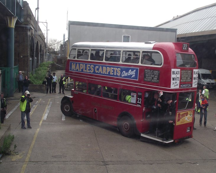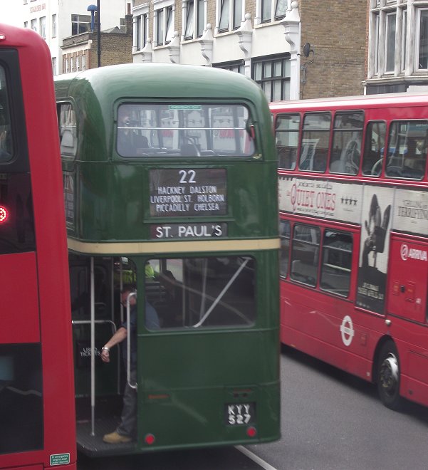 RT75Saturday 12th April 2014Prepared on Wordpad by Ian Smith, 17th April 2014Part 2: Journeys on the 22Ash Grove to Piccadilly Circus: RT3062I climbed the stairs on Saunders-bodied RT3062, and claimed a front seat. This gave me a good vantage point as the buses working the service on route 22 headed to the pick-up stops. RTW467 was followed by RTL453, both heading for Homerton, the former via Ash Grove Station, the latter more directly via Mare Street..Then RT1 pulled out to the stop, to fill up with those wanting to pay ten pounds for the privilege of a ride.