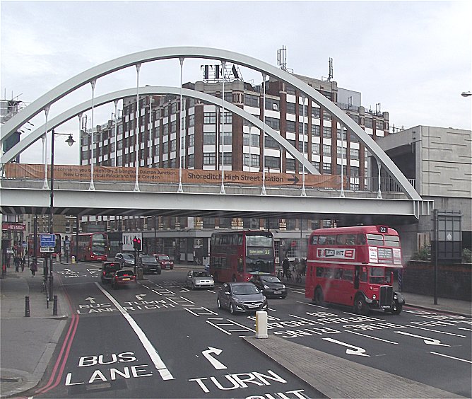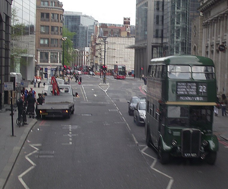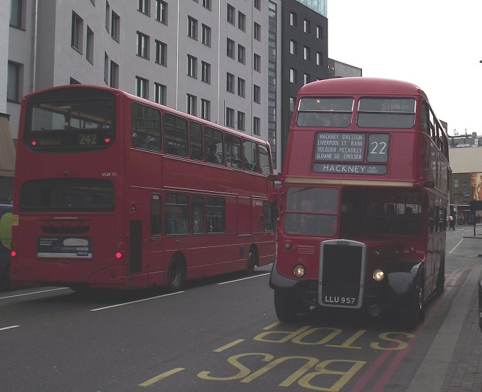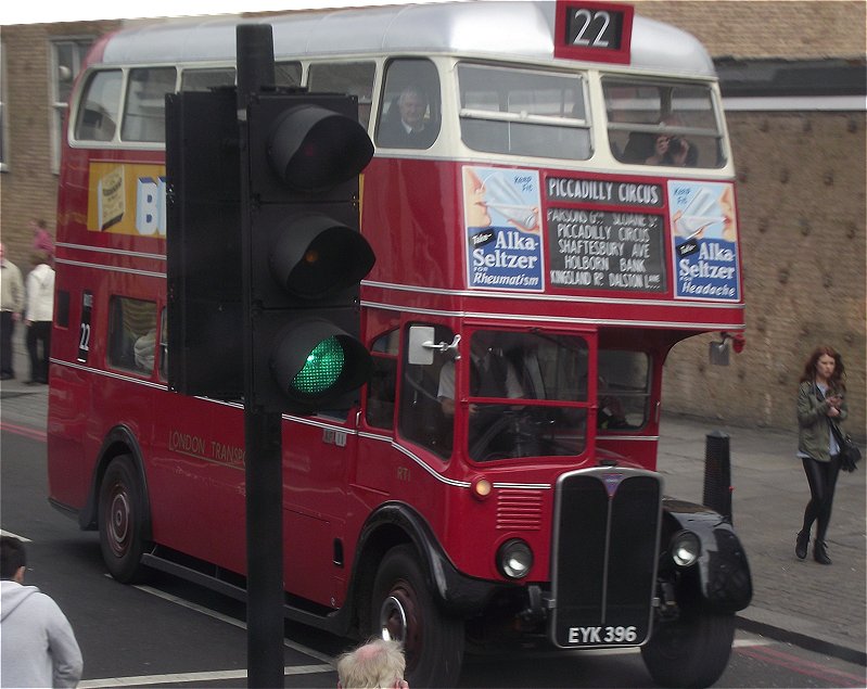 RT75Saturday 12th April 2014Prepared on Wordpad by Ian Smith, 17th April 2014Part 2: More Journeys on the 22Piccadilly Circus to Shoreditch Church: RT3062I wondered whether to change chariots, but there was a good crowd at the stop, and my chance of getting such a prime seat again were slim. So I stayed with RT3062 for the return journey.As we prepared to get under way RT3871 dashed round the corner into Great Windmill Street. We set off past the crowds of photographers, up Shaftesbury Avenue. GreenLine-liveried RT3238 came bustling along between the theatres. The next RT to pass was another of the GreenLine variety, this time RT3491. Then at Holborn Circus it was RTL453 that appeared, in its early livery and late-fitted roofbox body. We passed Bank, and turned up through the confines of Threadneedle Street to Bishopsgate. Yet another green bus came along, this time Country Area RT1700 on a full run to Piccadilly Circus. There were plenty of modern double-deckers about, mostly Tridents or DAF/Wrights, but a single-decker caught my eye at Liverpool Street Station: Scania/East Lancs ELS6 on the 42 to Denmark Hill. As we crossed over the railway lines curving out of Liverpool Street, behind Trident 17740 on the 8, we met RTW467 coming into town. It was closely followed by Saunders-bodied RT1396, bearing 22 blinds but a large PRIVATE slip-board. Suddenly RT1 was coming, hiding behind traffic lights. It passed. Then we were at Shoreditch Church, terminus for this short-working. The bus pulled off the High Street into Calvert Avenue, beside the church. I walked back to the High Street. There was now a large queue waiting at the Homerton-bound stop. RT3871 added to it, also turning at the Church before heading back for Piccadilly Circus. Green RT3238 took some of it, heading not for Homerton but for Ash Grove garage. It was lunch-time for me. I walked up the High Street, looking for somewhere suitable to eat. I found a brasserie, and lunch. Several RT types passed by outside. Shoreditch Church to Ash Grove Garage: RTW467I returned to the Shoreditch Church stop on the High Street. RTW467 arrived, heading for the garage, so I climbed aboard - inside - for the garage run, turning off the main route to head east to Ash Grove Station, then up Mare Street to the garage.I went into the garage yard again. Most of the buses not being used for the public service on the 22 were still there. In conversations I gathered that they were about to set off on a road-run to Brooklands. I accepted an invitation to ride with RT3254, at least part of the way. Part 4: Ash Grove to BrooklandsAll photos by Ian Smith. Click on any of them for a larger picture.