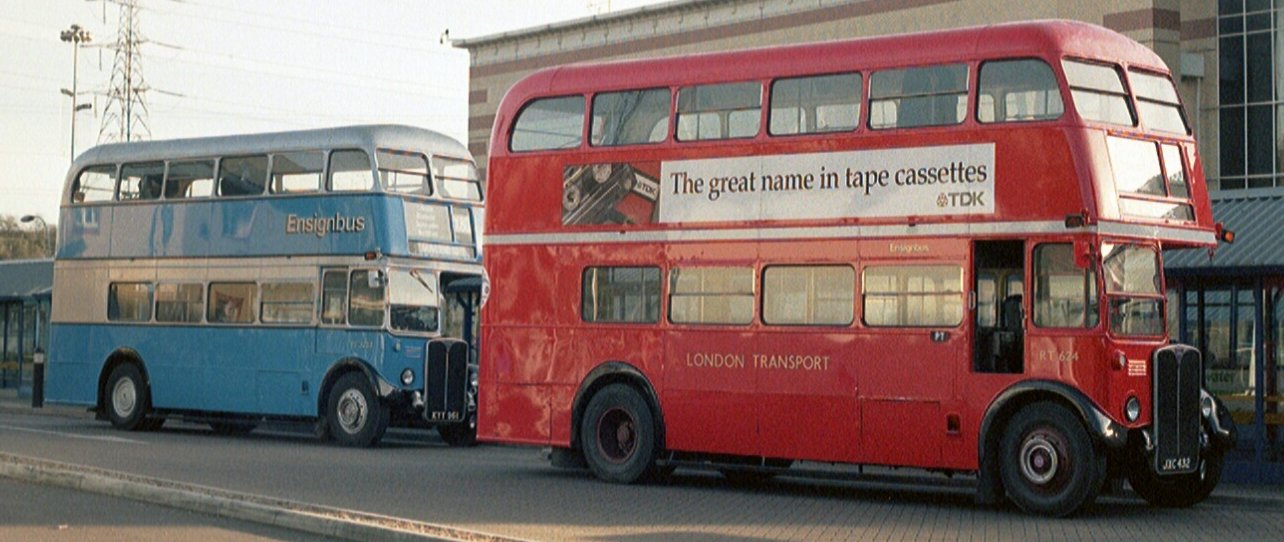 We roared along the dual carriageway towards the Dartford Crossing, swirled round the roundabouts and edged our way through the toll-booths into the tunnel. Despite having been through here on an RT before, there is still a frisson of fear as one heads for that tiny opening in a double-decker! But we soon emerged on the Essex shore, and wound our way round more roundabouts to find the Lakeside shopping pit. There RT624 pulled up in the bus station ahead of First Essex Leyland Olympian 34813.