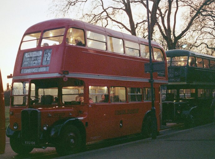 Behind that was RF486, with Peter Osborn and Steve Whitelegg. I went to say hello and they promptly invited me to join them and their families aboard the Central Area RF. I stowed my bag, and walked along the line in the fading light, looking at the splendid line-up: Central Area RT2177, Green Lane's RT3491, Memory Lane RT1709, RT2688, XF1, DM1052, RML2499 and Greenline RF269.