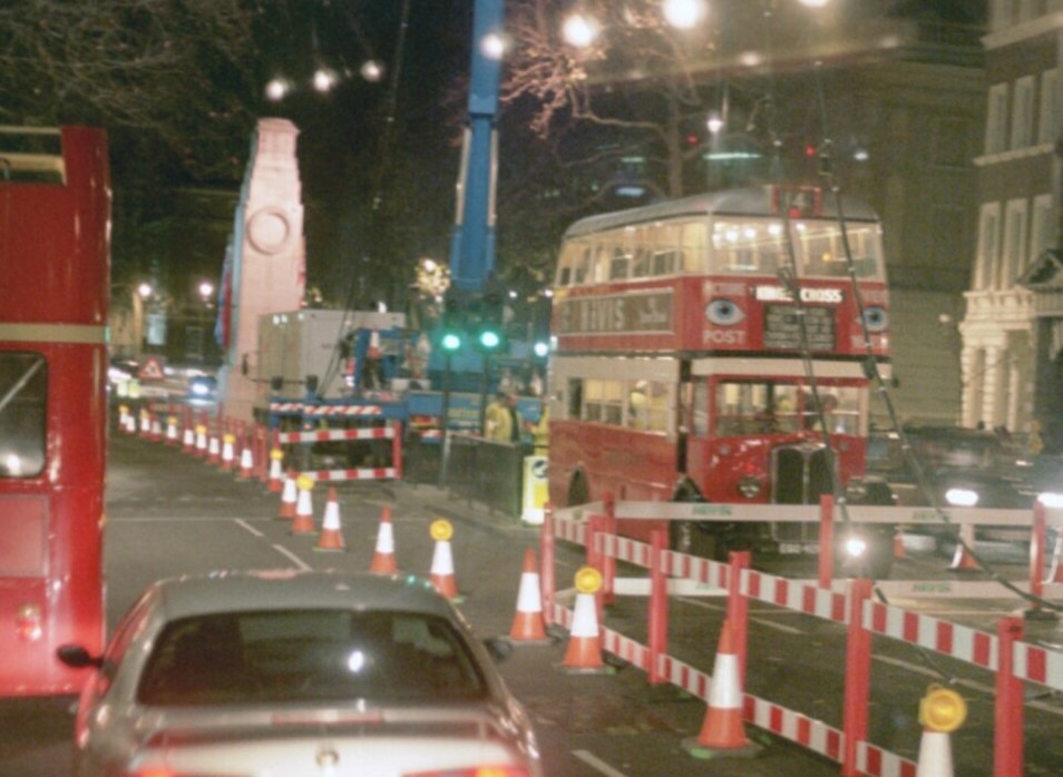 We went on, recrossing the river by way of Blackfriars Bridge, and turning left up Fleet Street to Aldwych, where we turned left again to cross Waterloo Bridge. Another circulation round the traffic system saw us heading to Lambeth Bridge, where we crossed the river for the sixth and final time. We motored up past Westminster Abbey and the Houses of Parliament to Parliament Square, where we met up again with RT3435, which preceded us up Whitehall. There we were intrigued to see STL2377 parked in a coned-off zone in the centre of the road, near Downing Street and the Cenotaph.