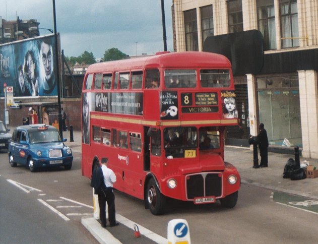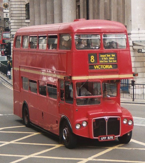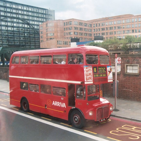 We continued along through Oxford Street, where we saw plenty of buses, but not the RTWs. They must have passed by as we filered down through the one-way back-streets to reach Piccadilly, for they had gone by the time we approached Victoria. RM1 was just leaving as we crossed the lights towards the bus station. I alighted, and paused to photograph my ride. Then it pulled away, to go round the block.