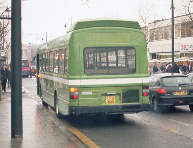 One complete round of the City Station shuttle had been covered by SNB312 in between their Abbey Station runs, so RMC1476 was back in business for the 1350 departure from St. Peter's Street. I went with them for the standard anti-clockwise trip. We pulled up at the Arena stop just behind the Beaver that I had earlier seen at the station, on the 304. We pulled out, and inched our way towards the traffic lights at the crux of the town. AV28, on a terminating 84, squeezed past a busy dust-cart and came along past us. A shower dampened proceedings (and dimmed the light too!). We escaped round the corner, only to find ourselves perhaps not inching but footing back down the hill towards the station. Universitybus Dart 115, wearing their startling but excellent pink and mauve livery, came up the hill on a 602.