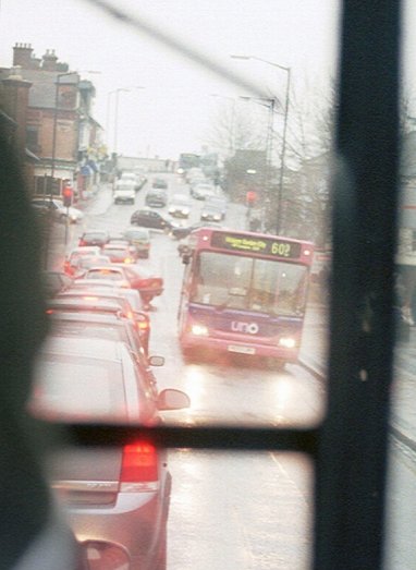 Eventually we left the congested main road, escaping into the station bus stance. We whirled through there, and continued our anti-clockwise peregrination, out onto the Hatfield Road. But heading back up into the City the traffic jams struck once again, and it struck me that I could progress faster on foot - and take pictures. So I alighted, and walked up the hill, while RMC1476 crept up behind me.