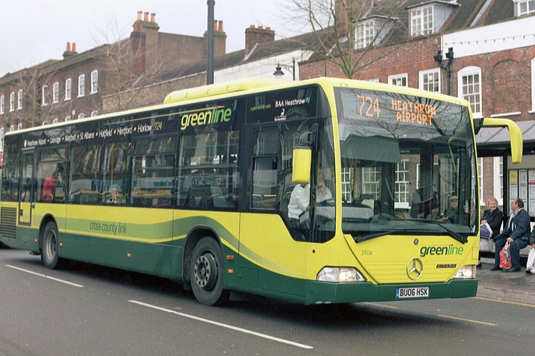 But Eddie had other ideas, and disappeared towards St.Albans Garage. Never mind, here was one of the new Mercedes Citaros on the 724: 3906 was heading west for Heathrow. Behind it was one of Universitybus' Dart/Pointers on the Borehamwood service.