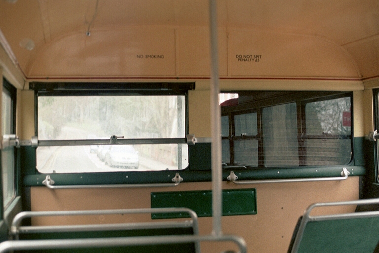 I greeted Eddie Knorn, who was driving, then climbed on and settled into an inside seat. The bell dinged and we were away, heading anticlockwise round the loop route, up into the city. Most of the passengers had gone upstairs, so I had time to look at the slightly off-familiar interior of the Cravens' saloon.
