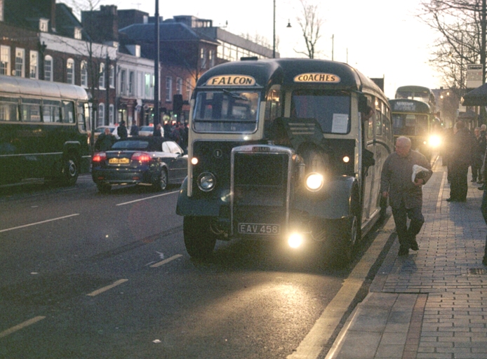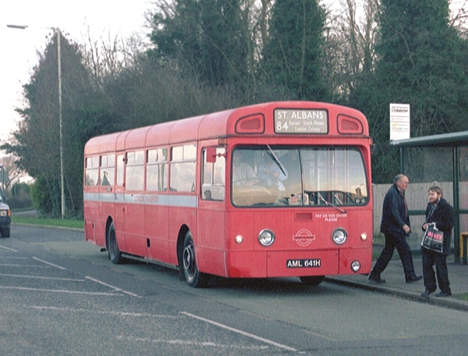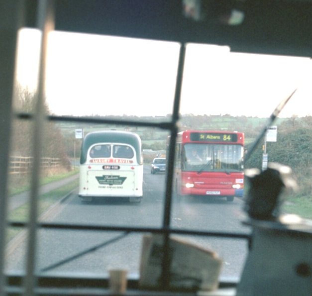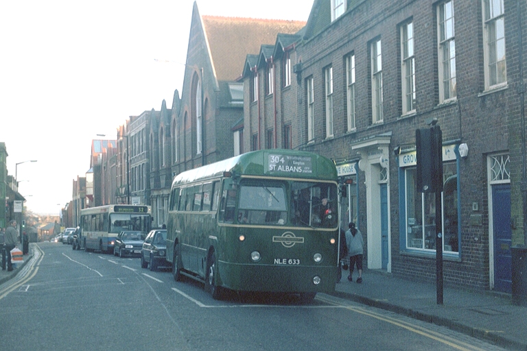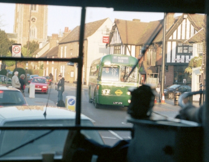 We reboarded, and headed back towards St.Albans. As we passed under the big railway bridge RT3871 hurried south, lights blazing. We turned up towards the station. At the Victoria Street lights a GS scurried across our bows. We followed it up the hill. RMC1513 came down, heading for the City Station with folk from the Model Railway Exhibition. Round the corner in rapidly darkening St.Peter's Street we met BN61.
