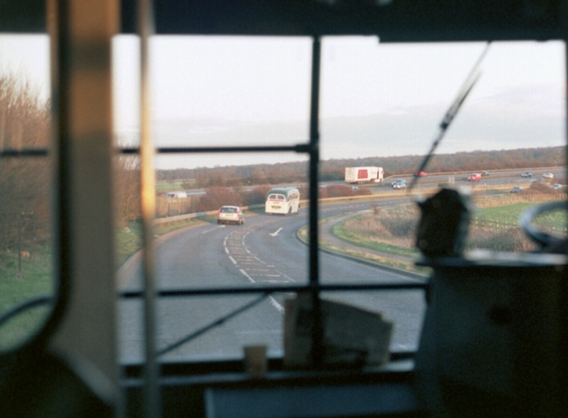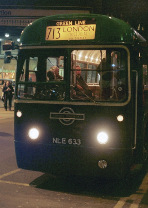 We took the London Road out of St.Albans, and again by-passed London Colney before heading for Shenley. We wiggled down the dark windying lane to Radlett, then took the back road into Borehamwood. Then it was back into red bus country for the ride down the A41 to Swiss Cottage, making odd drop-offs on the way. Baker Street, Park Lane passed as I dozed off. But then we were coming down Buckingham Palace Road, and turning in to Victoria Station.