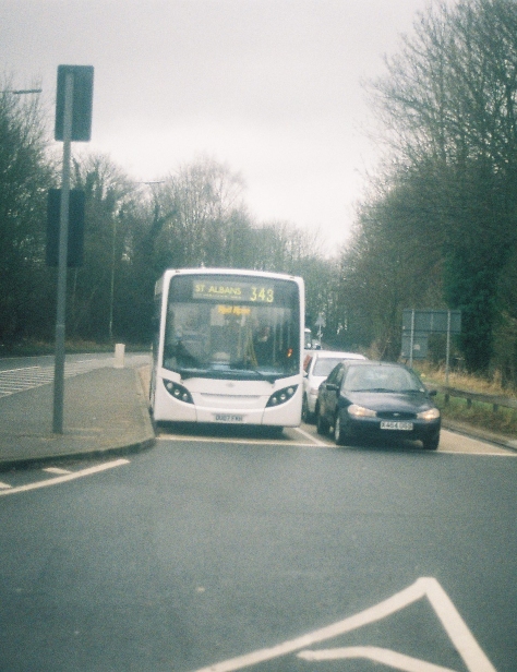 We squeezed our way up through Markyate, not helped by parked traffic, and turned right at the top onto the by-pass, just as the Red Rose service bus, Enviro 200 Dart OU07FKH, turned in.
