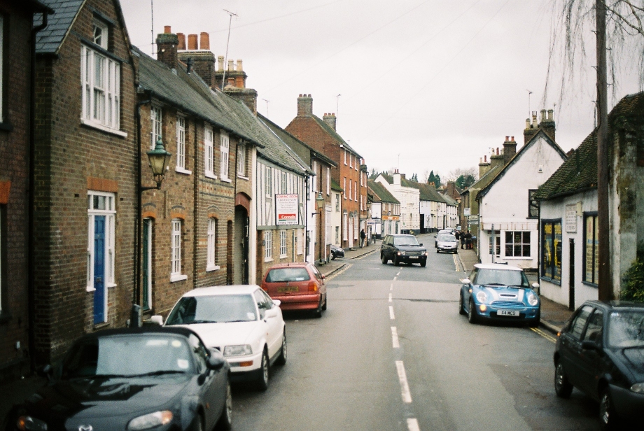 We turned left at the roundabout, to squeeze our way over the top of the town and descend out of St.Albans into the Ver valley. We joined Watling Street and headed north-west towards the old extremity of the LT system. Once out of the city and onto the old Roman Road it was fast and straight, and we watched the miles flash past as we headed for Redbourn. The A5 was put onto a bypass round the village, but we went straight in, under the old railway bridge and up through the narrow village street.