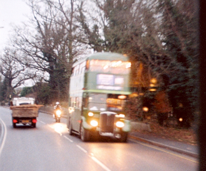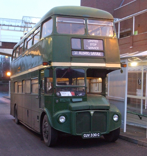 We went by the station and on round to the Hatfield Road, and headed east. We met RML903 roaring westwards on the other 330 service, and a little while later RT3254, lighting up the rapidly falling dusk like a friendly green dragon.