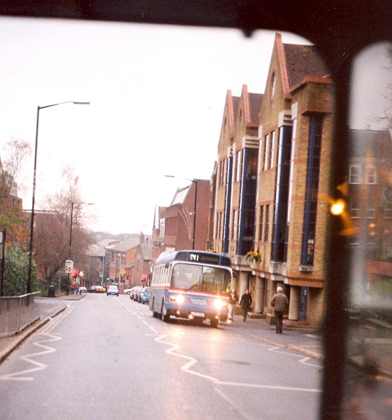 We were away too. I was invited to share the front seat behind the bonnet. We turned down Victoria Street, and met SNB218 on the stiff climb up from the station. A little further on we met RF633, which had changed over during the day with RF489, with RF633 returning from works attention to the offside panelling and RF489 heading for it. Now RF633 was heading up to St.Peters Street.