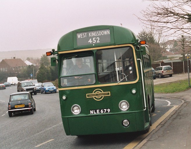 With a couple of other passengers I joined the RF, and Mike Dawes drove the bus back down to the main road, north along to Longfield Crossroads, and onto the 452 route to West Kingsdown (The 452, a Northfleet route, unusually missed out Longfield Station on its trip from Dartford to West Kingsdown via High Cross and Fawkham. Buses for it reached Dartford from Northfleet in service on the 450 or 480 routes).