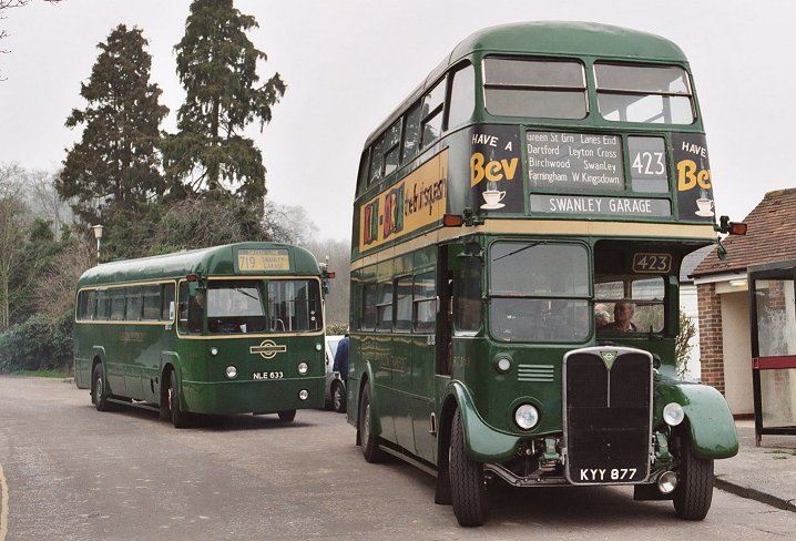 The RT pulled in to the stop - and then RF633 arrived on a 719 Greenline working. It too squeezed past and went up to turn. By now the villagers had started to gather. one green London Transport bus: unusual. Two: amazing. When GS60 came round the corner there was almost a cheer! But that's a story for Part Two.