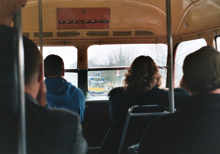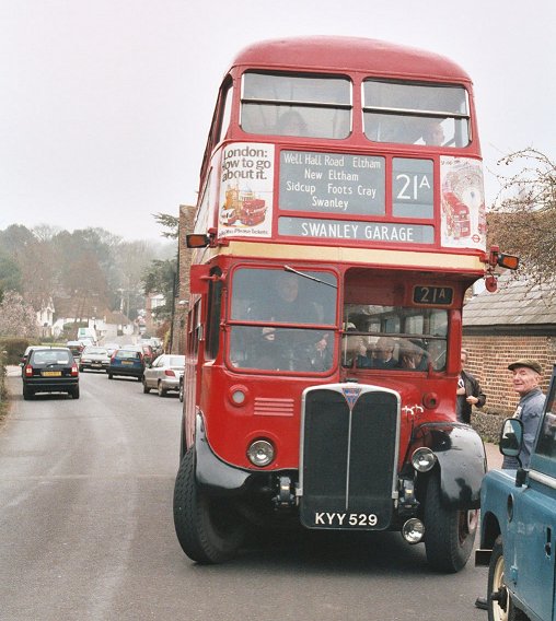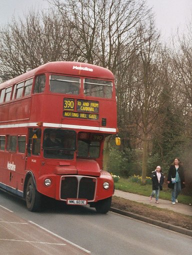 With blinds reset for Swanley Garage once more The RT swung back round to Sidcup Station, to pass the station West entrance before rejoining the main road up to the Lights and the old A20. We headed south again. This time I was "inside", sitting on the longitudinal offide seat. An odd encounter on the way was preserved RML2603: still in Metroline livery, and sporting 390 blinds, it sped past northwards as we headed south. Very soon we were back at Swanley Garage, and I alighted to have a look around the bookstalls.