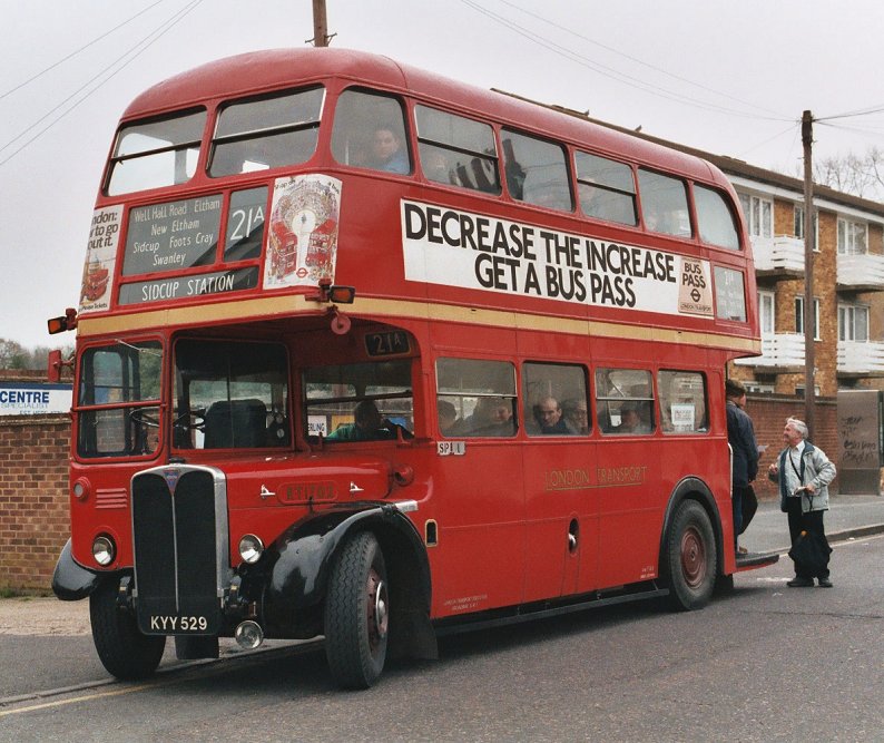 RT1702 reversed into the alley between the elegant but sadly-neglected thirties-style London Transport amenities block and the old LGOC-East Surrey garage, ready for another trip north.