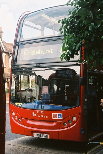 We set off again, out onto Chislehurst Common, where we squeezed past a road-making machine. We continued to the War Memorial, where Selkent Tident 17344 crossed our bows heading for Bromley on the 269. We turned left, and headed down Perry Street to the big roundabout over the A20, and on past the Queen Elizabeth Hospital and into Sidcup. We crossed over the High Street and headed for the Station. A Titan going towards Swanley caught me on the hop. We turned right before the station, and made our way round to the Sidcup Station bus stand. Someone went through the station to see whether anyone was on the east side.