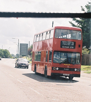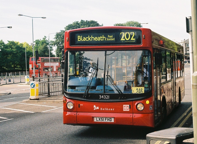 A standard Dart/Plaxton from Arriva (PDL132) trundled along on the 450 to Lower Sydenham. An Alexander-bodied Dart of Selkent (34321) passed on the 202 to Blackheath. Who remembers the DALs on this route?