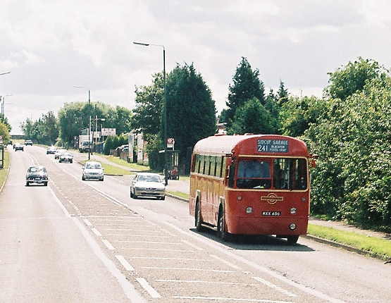 We dropped down to the site of Sidcup Garage, and rolled on, out into the country. A succession of red buses passed us heading for Sidcup or Eltham: T1102 on a 21 to Eltham was followed by RF429 on a 241 to Sidcup.
