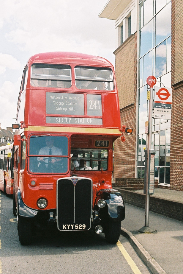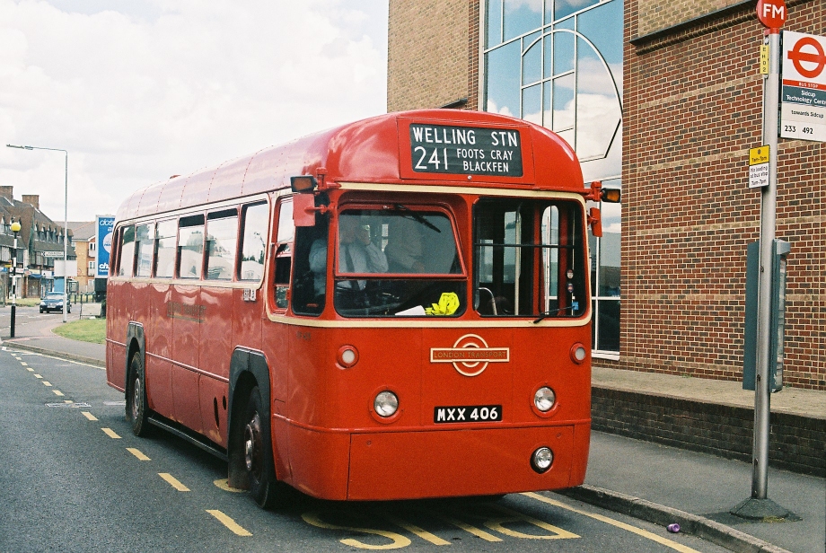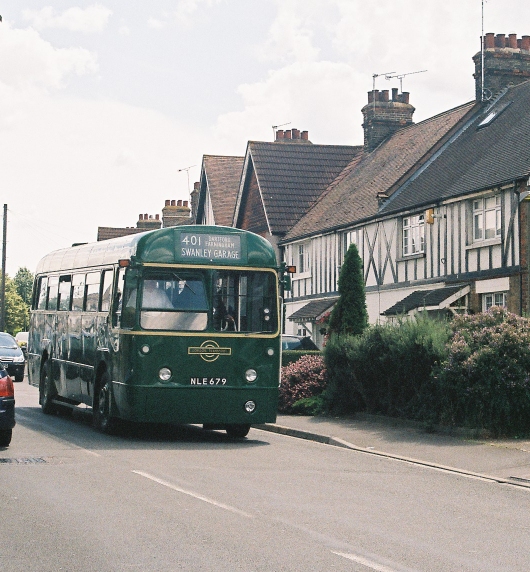 We headed north, down the old Roman Road towards Swanley, and round the Swanley Perturbation, then on along the old road towards Sidcup. RM1063 roared past, heading for Swanley as we climbed the long hill, then we met RF429 as we dipped down towards Sidcup Garage.