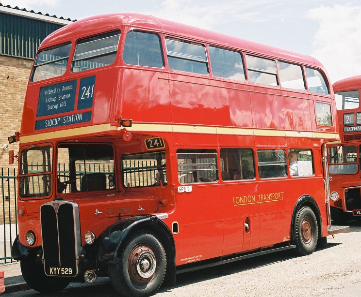I walked across towards RT1702, which was set up for a double-deck journey on the 241. The preservation group have an old set of Sidcup RT blinds, with the 21, 21A and 241 on, as well as others. RM8 was standing behind, parked out of the way. I boarded the RT, and found a seat behind the bonnet.