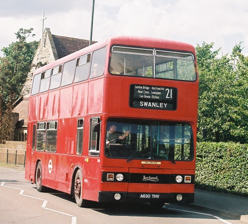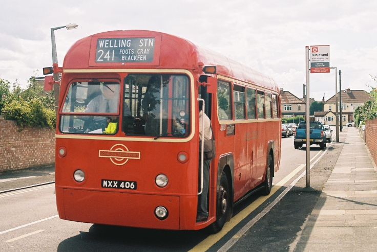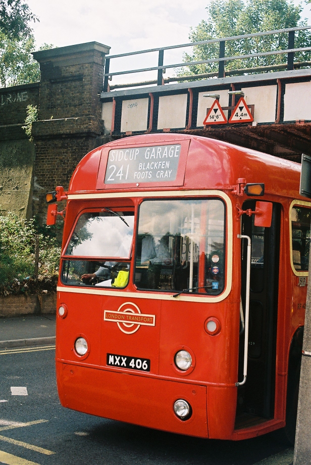We passed under the Station Bridge (in its earlier days the reason for saloons rather than double-deckers on the 241, until it was dug out). We took the second right turn into Willersley Avenue and followed today's 51 route through Blackfen to Welling High Street, where a left turn took us towards Shooters Hill Water Tower. We passed London Central's President PVL8 on an 89 from Slade Green then a right turn took us under the railway bridge past Welling Station and into the terminal loop.