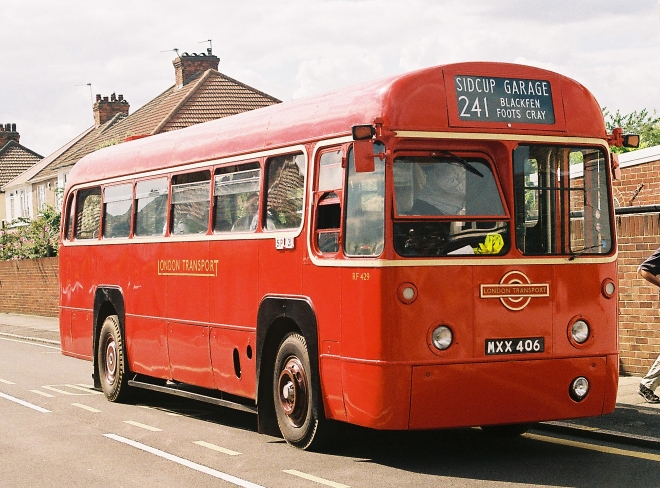 RF429 had just been acquired by some members of the Country Bus Rallies team, and I climbed aboard for a short test drive, south to an industrial estate and back to the garage. The bus was booked to go to Siodcup Station and back, but a quick calculation showed that there was time to go all the way to Welling and back before the final departures.