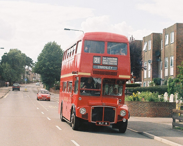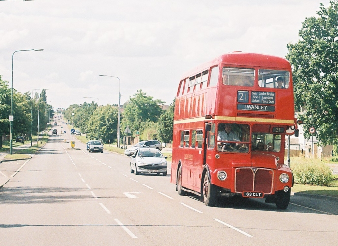 We wended our way back towards Blackfen and Sidcup, where we passed under the Station Bridge - still only just tall enough for standard double-deckers - and turned towards Swanley. On the way we met RML2699 on the 21 this time.