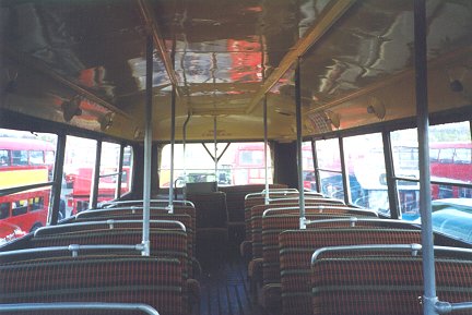 and the brown up to window-top level with cream ceilings. The moquette here is postwar RT.