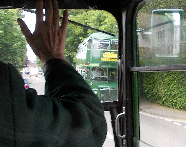 There was a chance to compare GreenLines with a sixty-year difference in design as Arriva's 3907 passed the RT on its way to Heathrow on the 724. 303: Welwyn Garden City to Stevenage Station: RT3254We headed back north, out of the formal gardens of the garden city into the hilly suburb of Knightsfield, and down into the quaint charm of Welwyn. A climb over the hill took us back to the Great North Road and the long climb up through the forest of Mardley Hill. We met RMC1507, out for the afternoon.We negotiated a way through Knebworth, and rolled over the countryside to Stevenage, to call at the bus station. I made a request to alight at the station, so Chris Wills took us round that way. I alighted there, with my thanks to the crew, and I climbed the ramp into the station to catch a train north. Seeing the green RT at the station stop brought back memories from the early 1970s, when green RTs at Stevenage Station were often the first signs of London Transport on my infrequent forays to the capital. Nostalgia. I suppose that is what these days are all about..