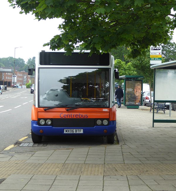We set off back to Ley Green, where the bus was posed in front of the bus shelter. Then it was down the hill to the duck-pond, for another photo-stop, then up the hill to Preston. We turned left for Hitchin, but made another pause in Gosmore before continuing into town, to St.Mary's Square. Temporarily the bus stops were clogged up with local services and a long-distance coach. Behind the RF was a Centrebus Solo, 309, off the 304 from St.Albans, while behind that was Centro 606, which must have followed us from Kings Walden on the 88 from Luton. After a minute or two the RF could be parked, for all to have a break and visit the market...