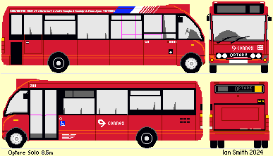 Connex promptly bought another eight 8.5m Solos, which were in overall red with white Connex logos.