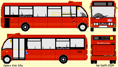 In November 2002 the company bought eleven 8.5m Optare Solos for routes S4 and S7. OP01-OP11 were standard Solos in overall red livery, branded as Quality Line". They took over from step-entrance Darts that had been on the S4.