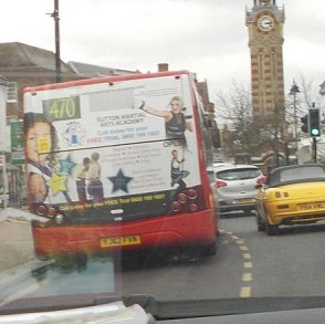 Rear ends: OPL03 in service on 470 at Epsom Clock Tower with full ad rear. OPL08 on the 470. (photos by Cynthia Smith)