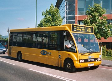Metrobus of Orpington in October 2002 bought a 8.5m Solo. 394 was for Kent County Council services in the Edenbridge area, working out of Godstone. It wore an overall yellow livery and had a rear-mounted bike rack. Another, 396, arived in January 2003, this time in Metrobus country area blue and yellow. Its usual home was the 409.
